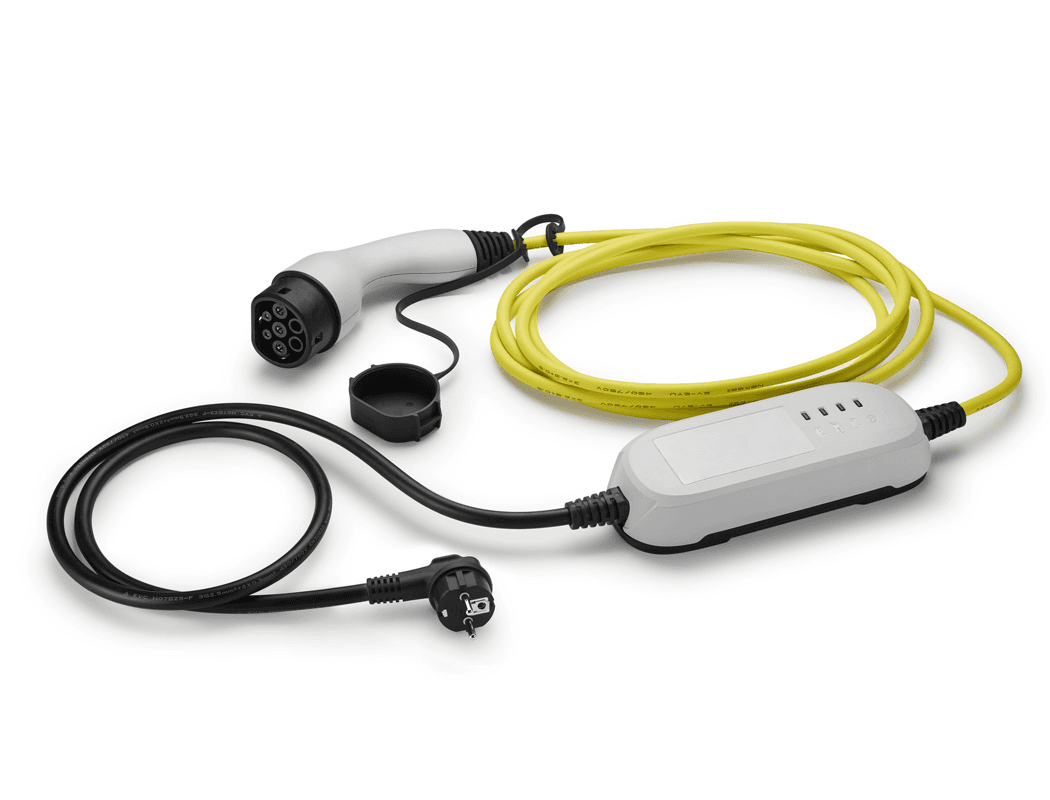 Kabel do ładowania samochodów elektrycznych w domu przy użyciu standardowego gniazdka 230V. Typ: Mode 2 EUDługość całkowita [m]: 6,0Połączenie: 1-fazowePrąd [A]: 10Strona infrastruktury złącza: Typ E/F, kolor czarny Strona pojazdu z urządzeniem wtykowym: Typ 2, kolor żółtyMoc ładowania, maks. [kW]: 2,3Napięcie sieciowe [V]: 230V 1ACZakres dostawy: kabel, torba oraz instrukcja obsługi